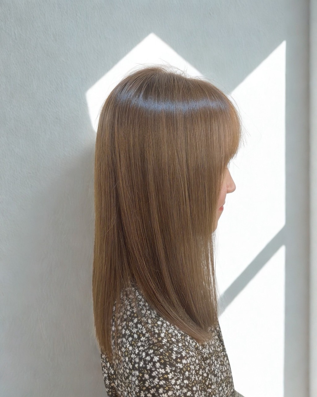透け感のあるヘアカラーで、上品なツヤと透明感を演出。