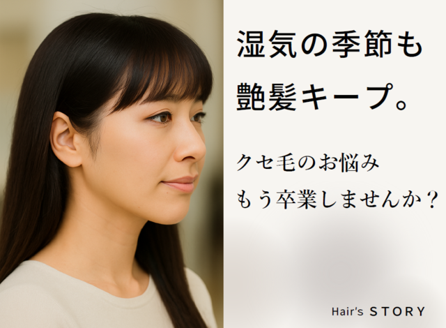 湿気で広がりやすい髪質や、生えぐせのうねりにも対応。髪質に合わせた施術で、