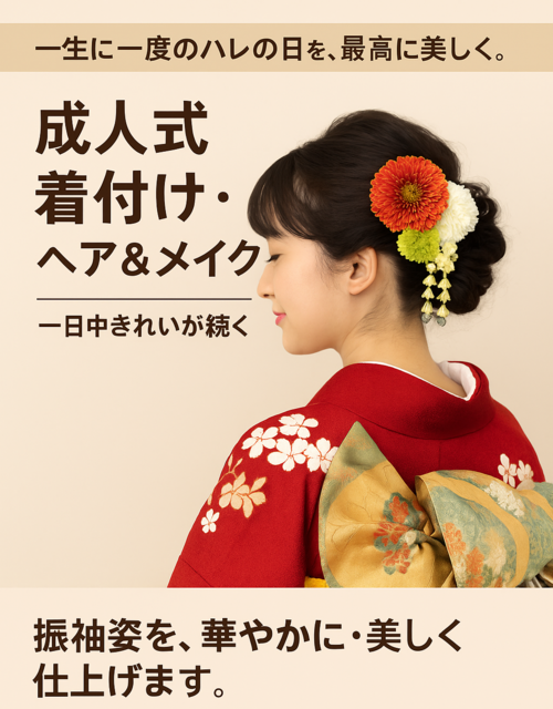 成人式の着付け・ヘア&メイク|振袖姿を華やかに演出