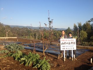 貸し農園なのですが、少し小高い丘の上にあってとても景色が良いです。 水道も何か所かあって、小屋やトイレもあるのでとても快適です。 農園の管理人さんは不定期ですがいらっしゃって、いろいろ教えてくれるので初心者の私もおいしい無農薬野菜がたくさん収穫できています!最近は野菜を買うことがなくなりました☆みなさんとちょっと雑談したり、お茶したり、景色も良いので自然の中で癒されます。秋冬野菜の植え付けを管理人さんが手伝ってくれて、収穫が楽しみです!