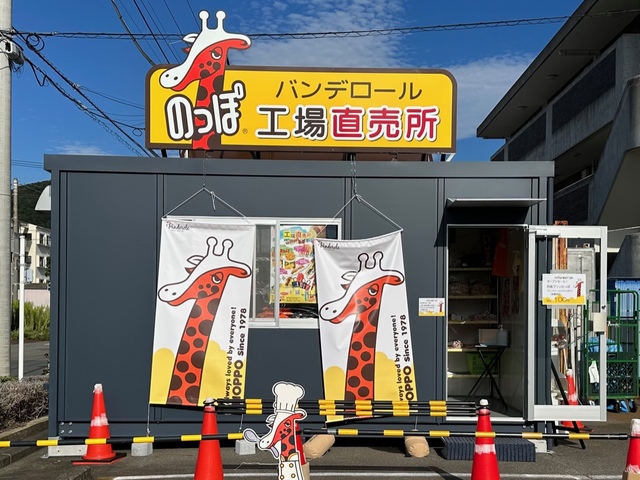 沼津の名物「のっぽ」がバンデロールの工場敷地内で買うことができるように。通常ののっぽパンだけでなく、ここでしか買えない具がサンドされたのっぽもあります!キリングッズもかわいいし、焼きたてパンとアウトレットのお菓子も置いてありました。