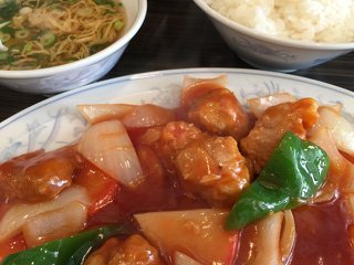 開店準備をしていた頃にご主人に「沼津の杭州さんですか?」とお伺いしたら、一人で長く続けたいから、こちらに移ってきたとおっしゃっていました。料理の種類が爆発的に多かった沼津のお店から、かなり品数を絞ったとのことでした。絞っただけのことはあって、どの料理もおいしそう。主に800円程度のメニューが多かったようですが、今日は酢豚のランチをいただきましたよ。すっぱくてさっぱりした酢豚はもちろん野菜たっぷりだし、スープもおいしいし、なんとご飯はお替り自由。お手頃で通えそうなヘルシーさでしたよ。 (投稿:2015/09/18 掲載:2015/10/23)